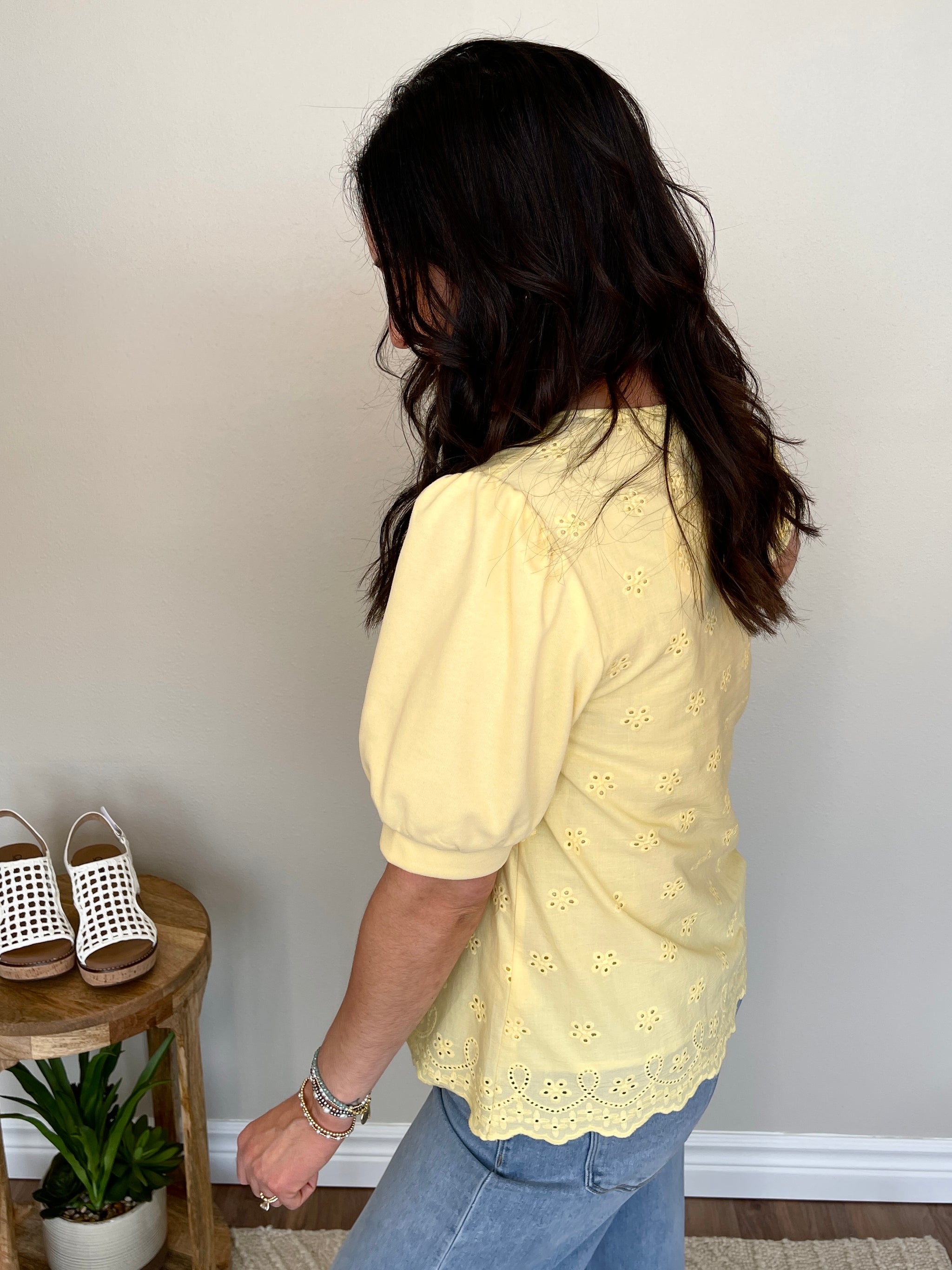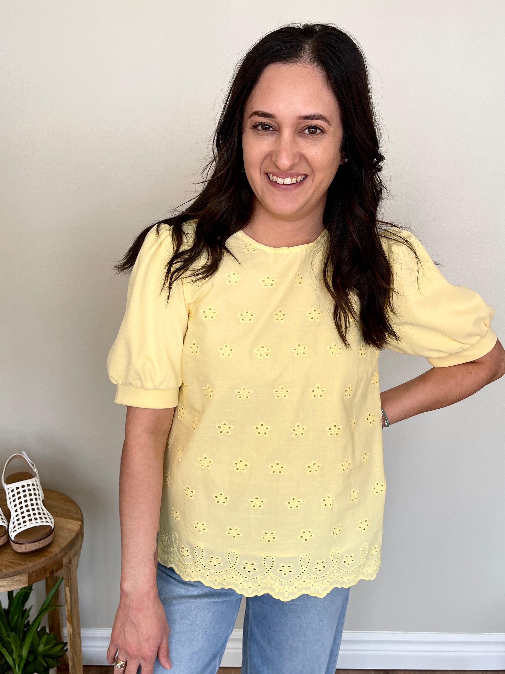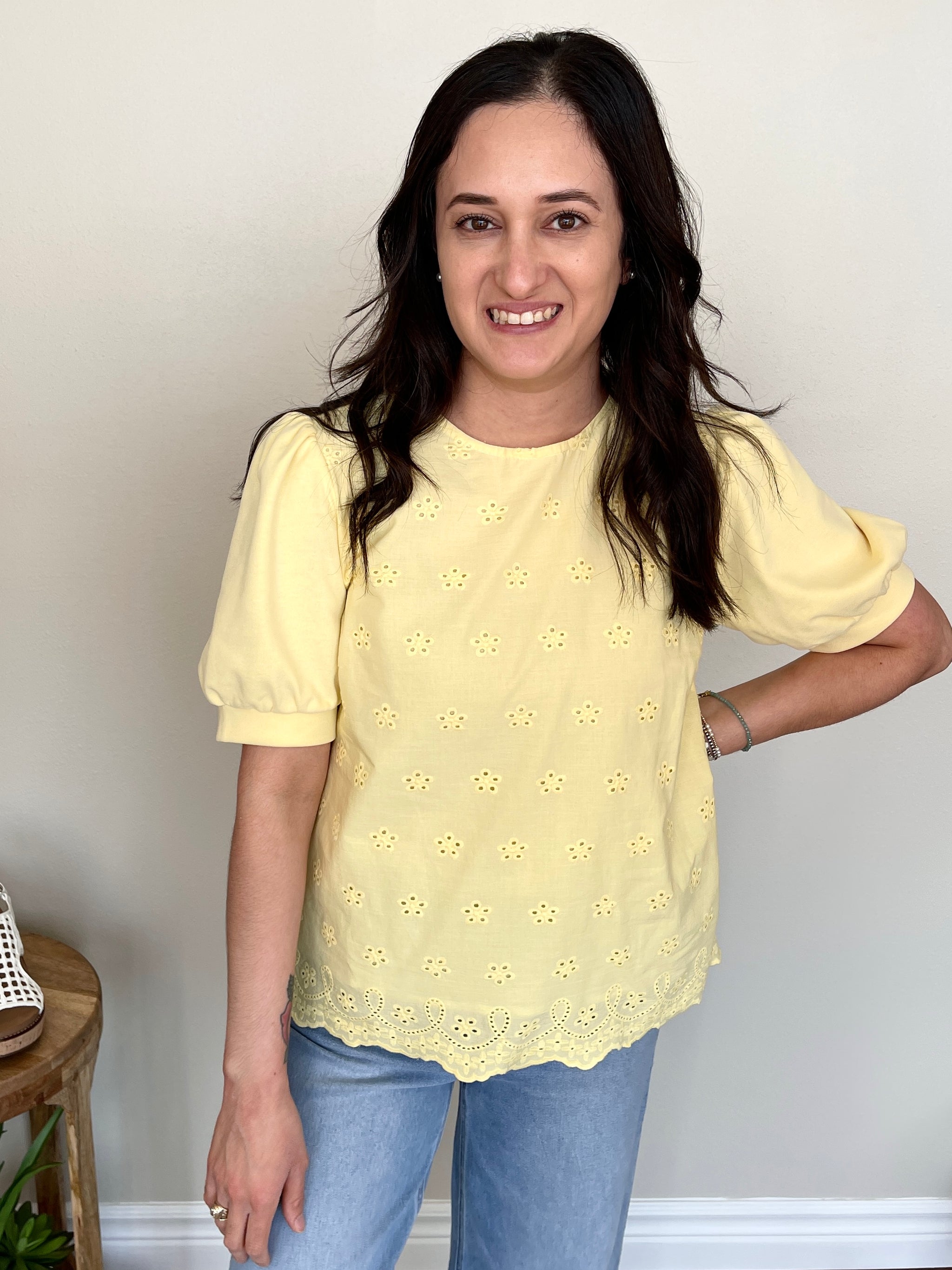 The Lemon Drop Top is sunshine in a shirt! This short sleeve yellow top features a beautiful embroidered design on both the front and back for a rich, artisan-inspired detail that makes this top truly special. Pair it with white jeans or linen trousers for a fresh, polished look, or style it with denim shorts and sandals for a casual, breezy summer outfit. Tuck it into a high waisted skirt for a feminine, elevated vibe or wear it loose for an effortless, relaxed feel. The embroidered detail makes it a standout piece that looks just as good coming as it does going!